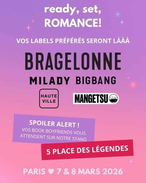 Retrouvez Bragelonne, Milady, Editions Hauteville, Big Bang et Mangetsu au salon Ready, Set, Romance !